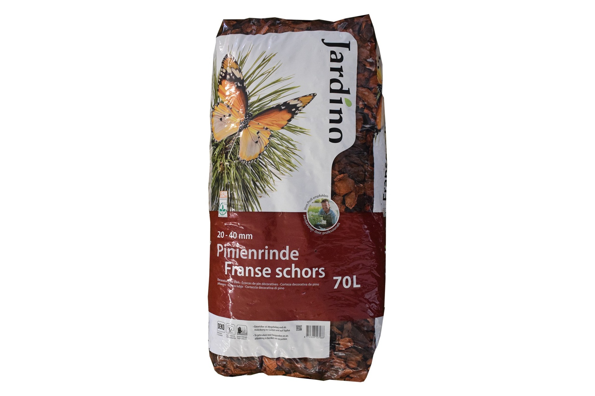 Franse schors 20–40 mm is een hoogwaardige, decoratieve boomschors afkomstig van dennenbomen. Deze schors heeft een grove structuur en een warme roodbruine kleur, waardoor het een natuurlijke en verzorgde uitstraling geeft aan tuinen en borders.